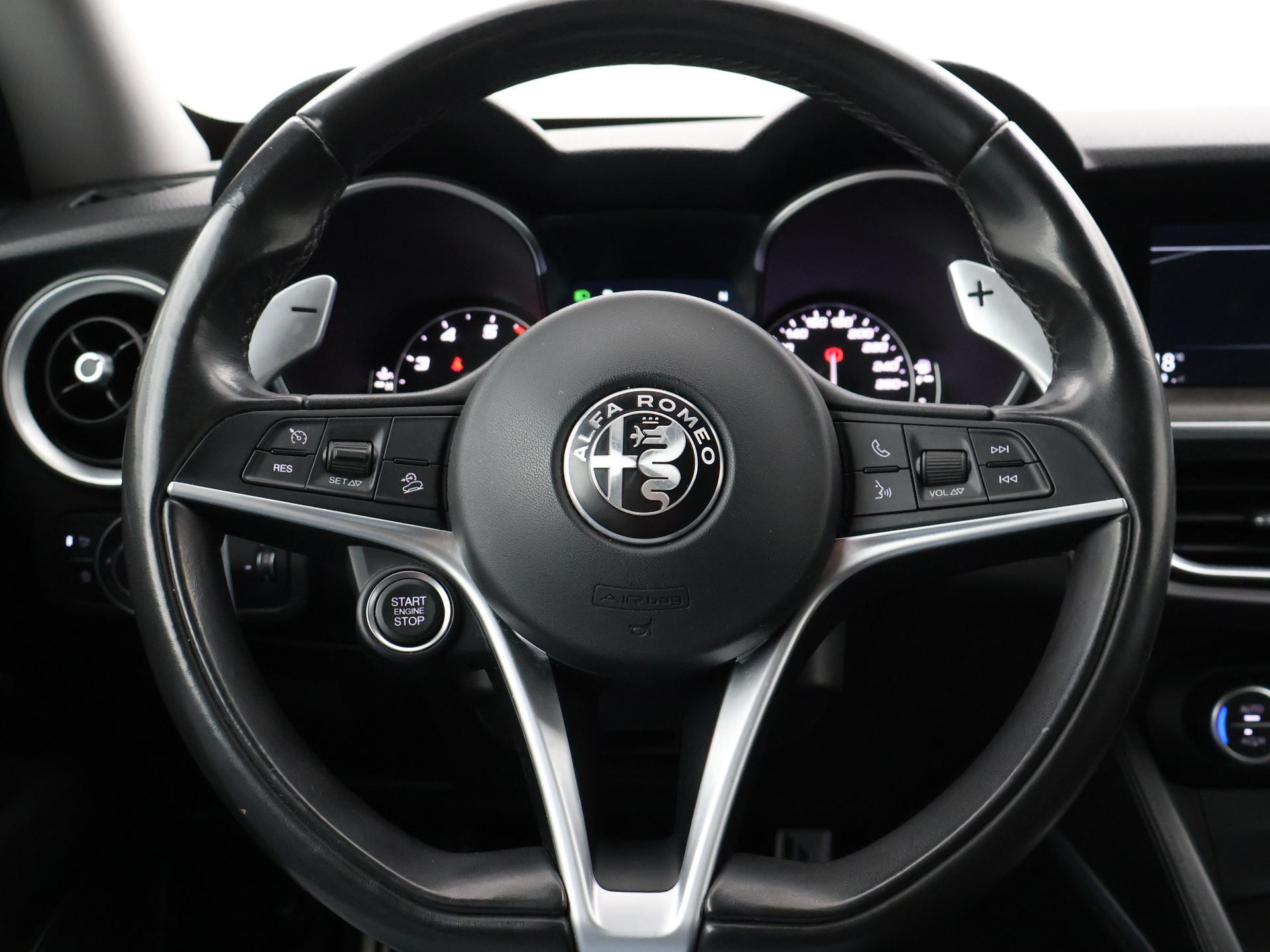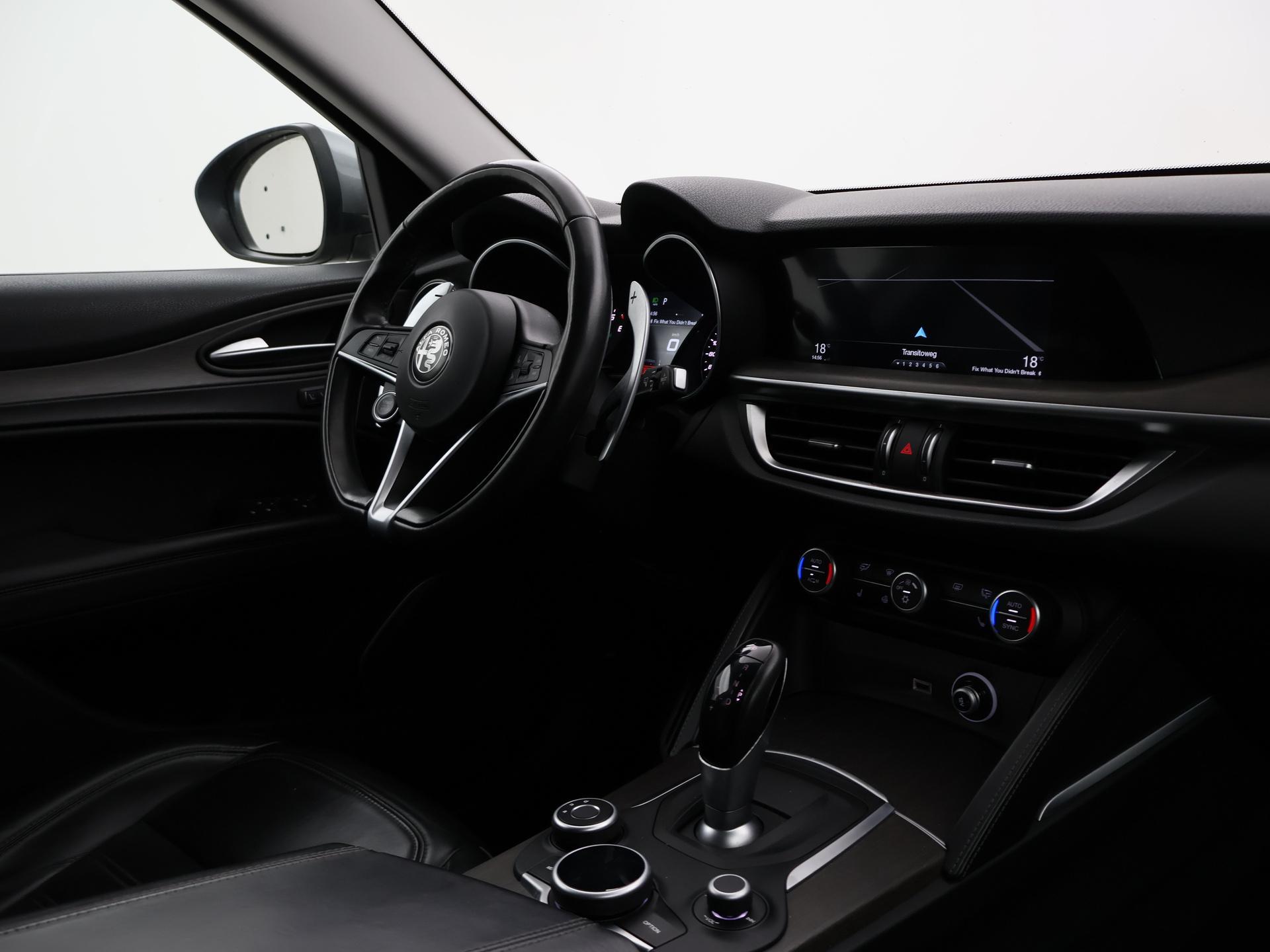 2.0 Turbo 280 PK AWD Automaat, Donkergrijs met hoogglans zwarte 20 inch velgen, Zwart volledig leder interieur met Alfa Romeo logo's in de armsteun, Stoelverwarming, Stuurwielverwarming, Achteruitrijcamera, Navigatie, DAB+ digitale radio, Trekhaak met 2300 kg trekgewicht op kenteken, Elektrische achterklep, Keyless-entry en keyless-drive, Sportuitlaat met dubbele pijpen, Bi-Xenon koplampen met LED dagrijverlichting, Bluetooth met audiostreaming, DNA Regelbare rij-eigenschappen.