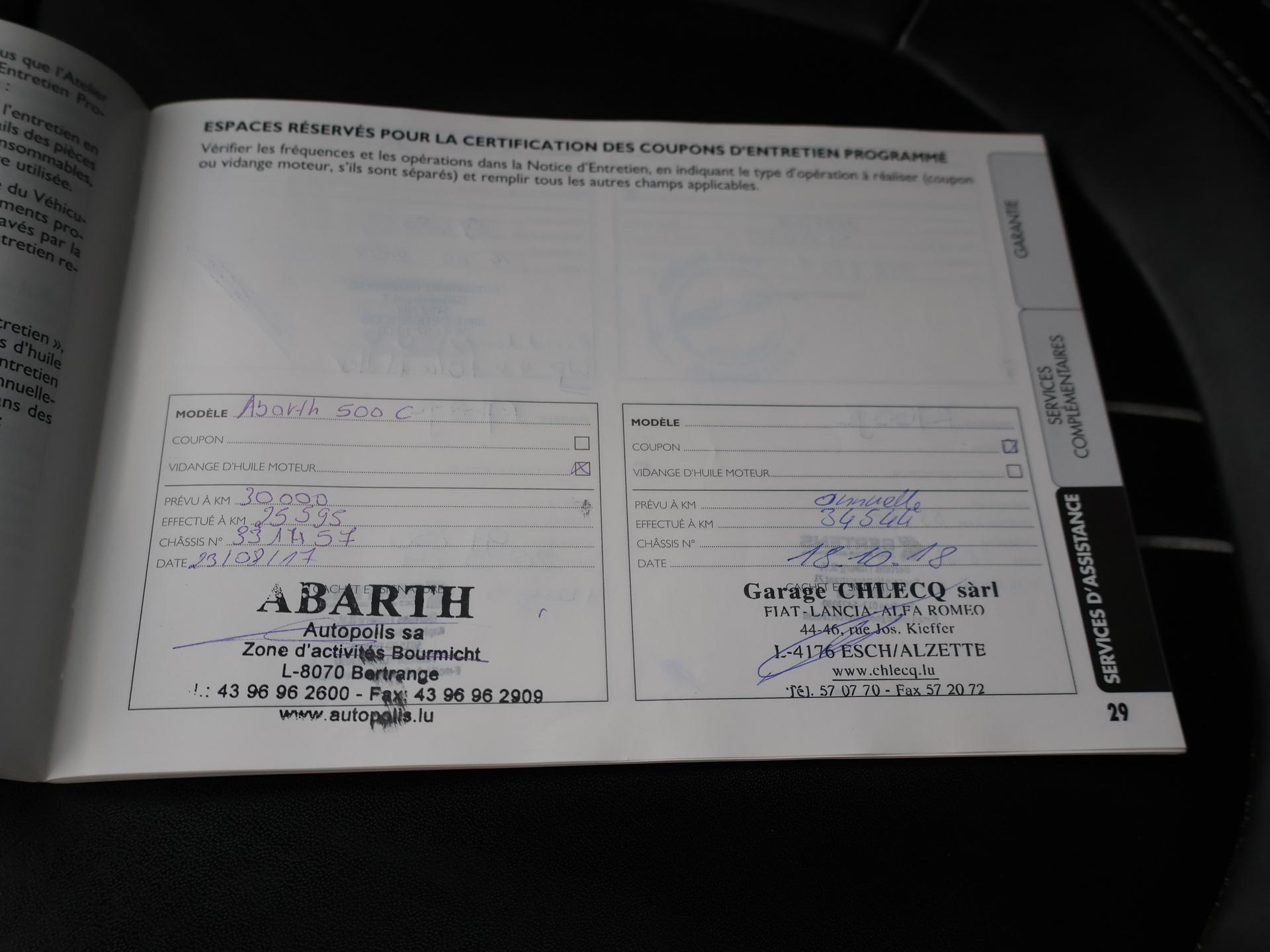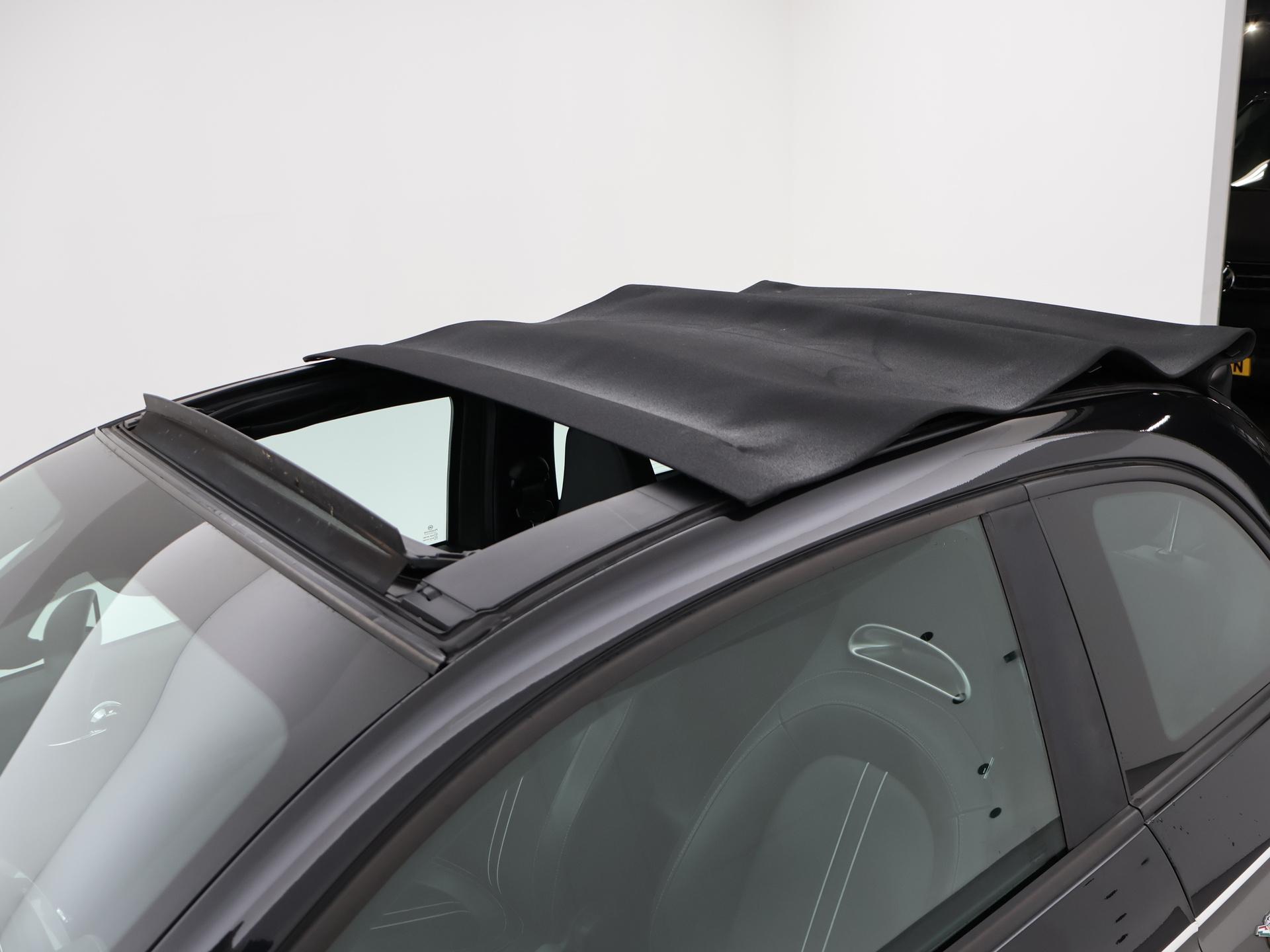 Fiat 500C Abarth 1.4 Turbo T-Jet 135 PK, Bi-Tone donkergrijs met zwart, Zwart volledig leder sportinterieur met wit stiksel, Dubbele sportuitlaat met elektronisch regelbare kleppen op afstandsbediening, Zwarte elektrische cabriokap, Rode remklauwen, Lichtmetalen velgen, Leder sportstuurwiel, Airco, Parkeersensoren, Digitale cockpit / digitale tellers, Onderhoudsboekje ingevuld tot en met 2025.